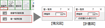 | 壁一覧表 | 伸縮率 | 「壁番号」メニューの「壁一覧表配置」から配置する表の「伸縮率」の初期値を設定します。 表の配置については、「壁一覧表を配置する」を参照してください。 ![]() |