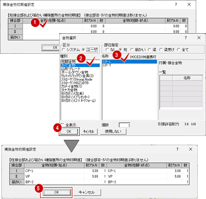 補強金物の初期値を設定する (概要設定-補強金物設定 ※計画図のみ)