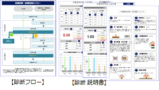「診断結果」では、判定結果を確認して診断書、ご説明書(Excelデータ)を作成することができます。
