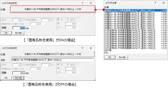 このとき、「専用初期設定:凡例-耐力壁」の「固有名称を使用」がOFFの場合は、名称も変更できます。