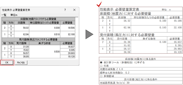 性能表示に関する性能表示 必要壁量算定表を作成します。