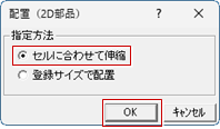 OFFのときは、部品マスタに登録したときのペンNo.になります。 - 「配置(2D部品)」ダイアログで納まり図の配置方法を指定して「OK」をクリックします。