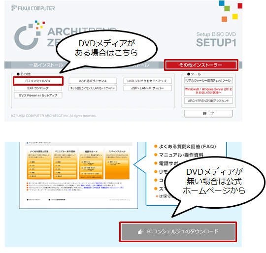 「操作サポートに関するご案内:FCコンシュルジュからダウンロード」