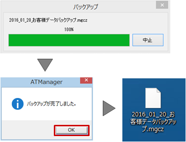 - 処理が開始され「バックアップが完了ました。」と表示されます。「OK」をクリックします。