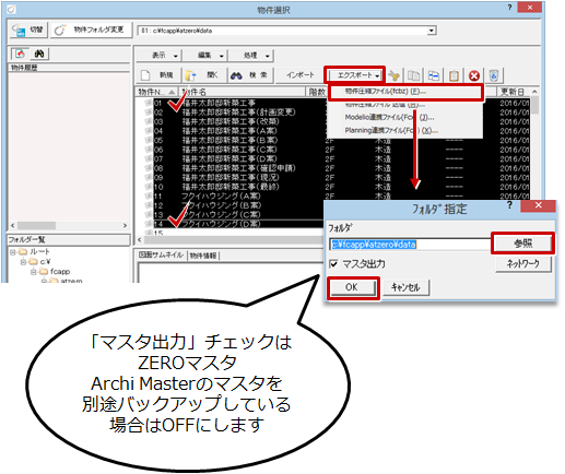 - 物件データのバックアップは、ARCHITREND ZERO ユーティリティでも行うことができます。