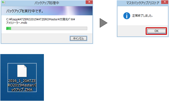 - パソコンが故障した際などに備え、バックアップで作成されたファイル「○○○○○.ZMA」を、バックアップ先として適切な媒体に保存してください。