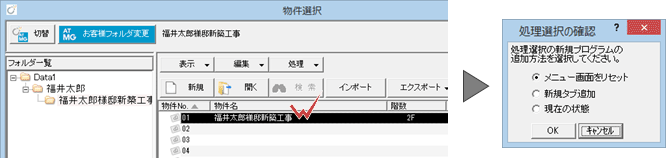 Q:物件を開いたときに「処理選択の確認」ダイアログが開きます。どれにチェックを入れればよいですか?