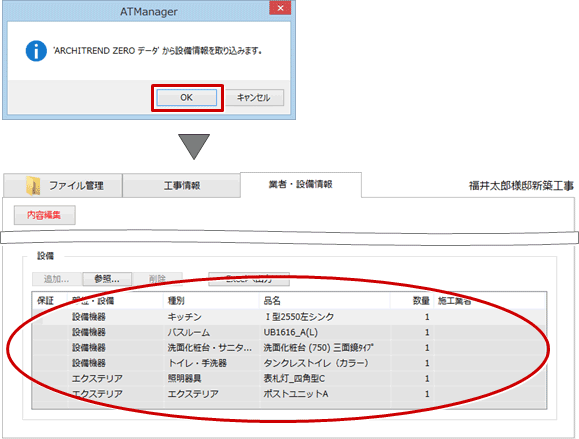 Q:物件で使っている設備を「業者・設備情報」に取り込む方法を教えてください。