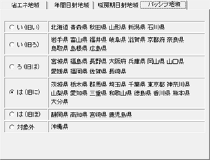 | パッシブ地域 | 「エネルギーの使用の合理化に関する法律」で制定されている断熱性能の地域区分を設定します。 | |