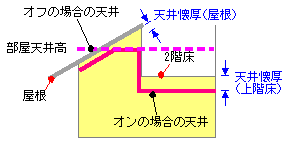 「天井懐厚」の「屋根」「上階床」で設定します。