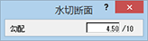「屋根」メニューから「水切断面」を選び、水切りの勾配を設定して描く位置と向きをクリックします(入力方法:1点方向)。