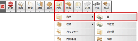 - 「内部」メニューから「和室」の「畳」を選びます。