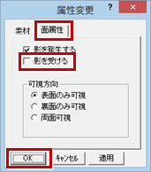「属性変更」ダイアログの「面属性」タブを選択し、「影を受ける」をOFFにして、「OK」をクリックします。