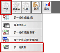 - 木造壁量計算表の「一括」メニューから「表一括更新」を選びます。
