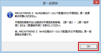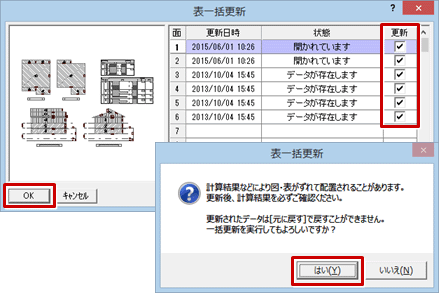 - 「表一括更新」ダイアログの「更新」で、更新しない図面をOFFにして、「OK」をクリックします。