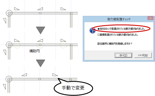 問題があるときは、「はい」をクリックすると該当箇所に補助円が登録されます。