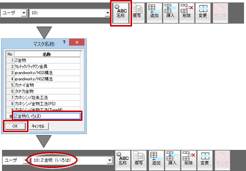- 「マスタ名称」で、マスタの名称を設定して「OK」をクリックします。
