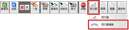 「耐力壁」メニューから「耐力壁編集」を選びます。