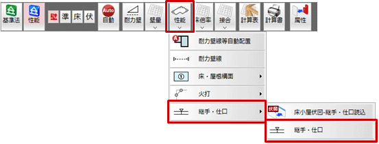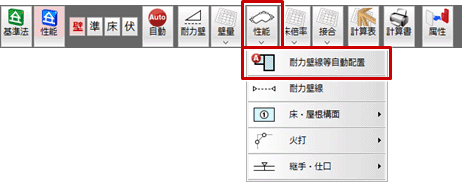 - 「性能」メニューから「耐力壁線等自動配置」を選びます。