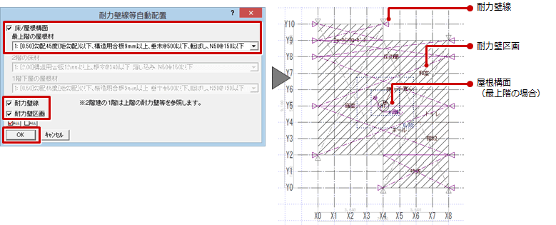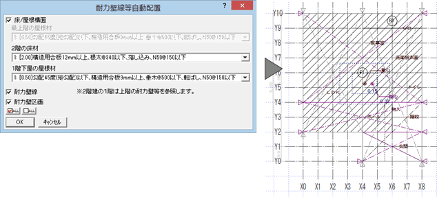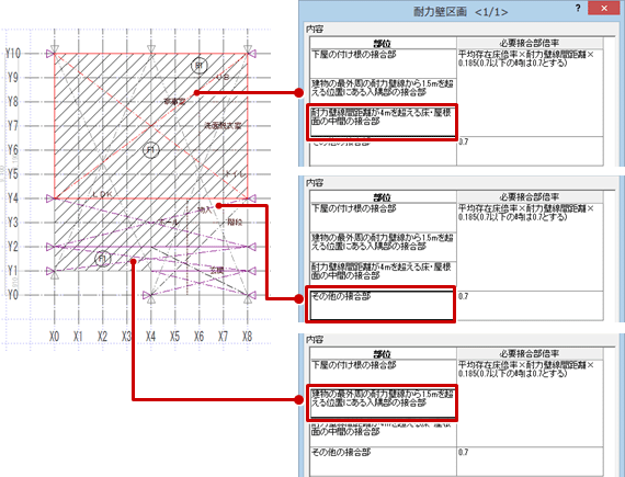 この部位の初期値は、建物形状、耐力壁区画の配置状況、耐力壁線間の距離などをもとに自動設定されます。