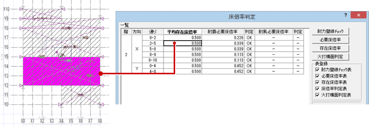 床倍率等をチェックする(2階)