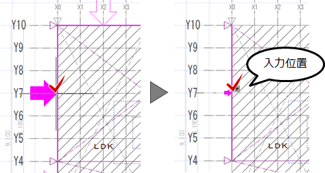 - 継手・仕口の入力位置をクリックします。