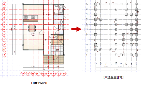 ここでは、1階平面図に通り芯が入力されているものとして解説します。