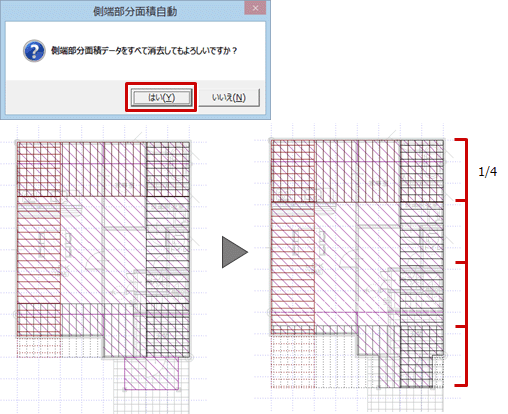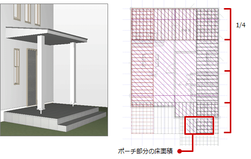 ポーチ部分を含んだ側端部分面積が再設定されます。