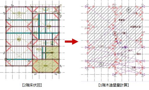 ・ 1階には、2階床伏図の火打梁を読み込みます。
