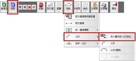 - 「性能」メニューから「火打」の「床小屋伏図-火打読込」を選びます。