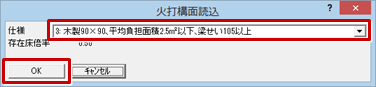 - 「専用初期設定:性能表示」の「火打構面チェック」で「耐力壁区画」がONのときは、「火打構面読込」ダイアログで火打の仕様を選んで、「OK」をクリックします。