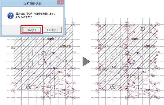 すべて削除して読み込むときは「はい」、処理を中止するときは「いいえ」を選びます。