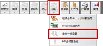 - 「接合」メニューから「金物一括変更」を選びます。