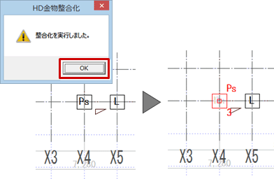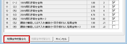 - ここでは、2階柱脚の金物を整合化するため、「柱脚金物を整合化」をクリックします。