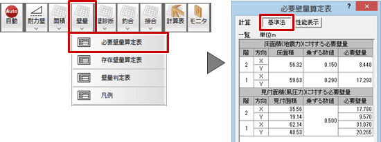 木造壁量計算の必要壁量算定表なども、基準法モードが初期値になります。