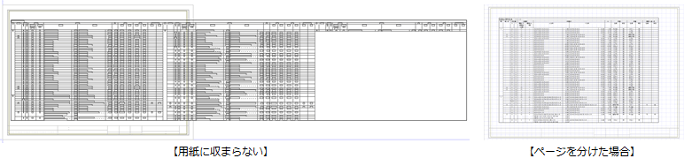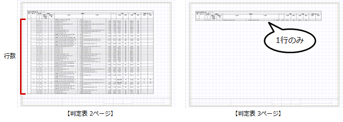 次のように1ページが1行のみになってしまうような場合は、各ページの表の行数を変更して(初期値は50行)、表をまとめることができます。