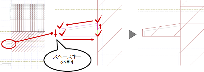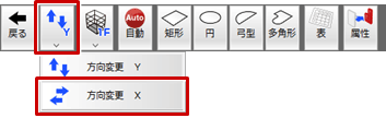 - 「方向変更」メニューから「方向変更 X」または「方向変更 Y」を選び、庇の見付の方向に切り替えます。