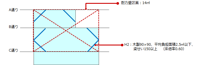 ※ ここでは耐力壁区画の面積を14.0㎡とします。