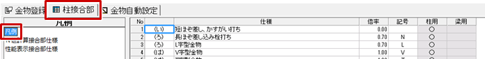 - 「柱接合部」タブの「凡例」をクリックします。