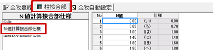 - 「柱接合部」タブの「N値計算接合部仕様」をクリックします。