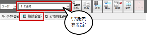 ※マスタタイプを変更する場合は、「柱接合部」タブをクリックして指定します。