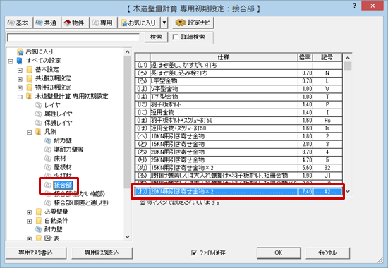 - 「専用初期設定:凡例-接合部」で接合部仕様が追加されていることを確認します。
