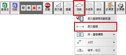 - 「性能」メニューから「耐力壁線」を選びます。