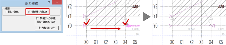 - 「仮想耐力壁線」をONにします。