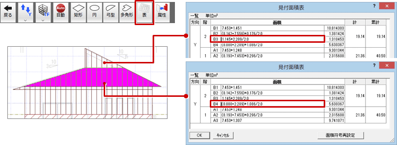 - 「見付面積確認」をクリックして、分割した見付面積を確認します。