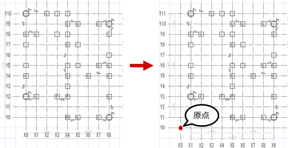 Q:柱接合部の自動設定で作成される通り番号の原点(X0Y0)位置を指定する方法を教えてください。