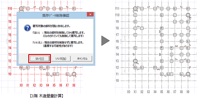 - 「図面複写」ダイアログで「2階」の「通り番号」を選択して、「OK」をクリックします。