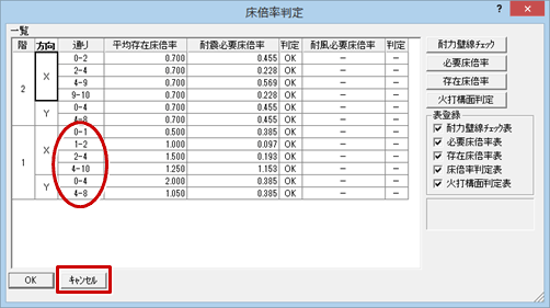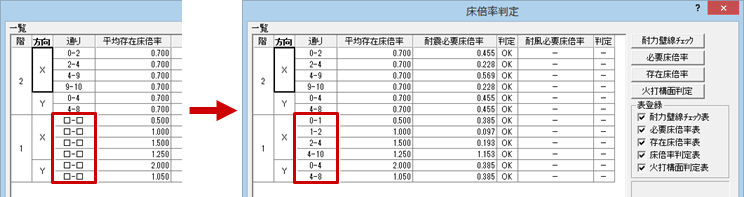 - 床倍率判定表の「通り」の表記が正しく割り当たったことを確認します。
