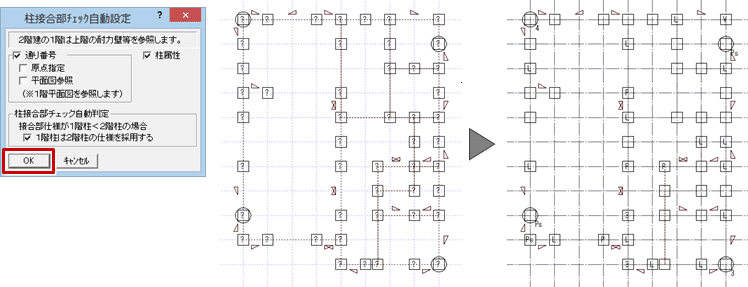 - 「柱接合部チェック自動設定」ダイアログの内容を確認して、「OK」をクリックします。