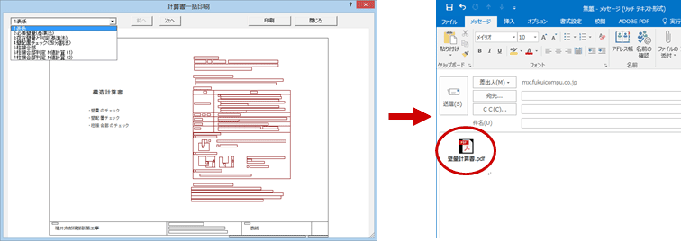 Q:「計算書一括出力」で作成した計算書を、社外の人にメールで送る方法を教えてください。